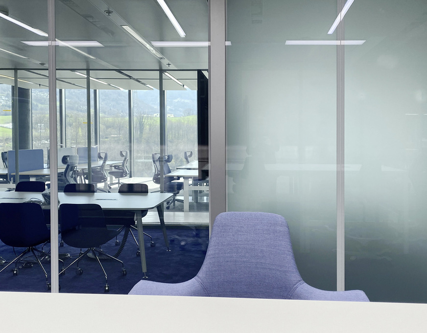 Mit der Variante eyrise i350 wurde eine Innenraum-Lösung entwickelt, die ausch als Privacy-Variante bezeichnet wird. Auch die hierbei verwendeten, hochtransparenten Gläser lassen sich bei Bedarf auf Knopfdruck von klar durchsichtig nach transluzent schalten (und umgekehrt).