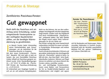 Anfang der 2000er nahm die Entwicklung von Passivhäusern an Fahrt auf. Darauf reagierte die Fensterindustrie und fing an 3-fach verglaste Fenster-Systeme zu entwickeln. Eines davon war das „Thermo Win“ Fenstersystem von Kömmerling, ein isoliertes Komplettsystem (Bautiefe von 100 mm), bei dem der Rahmen und das Flügelprofil durch hochdämmende Polystyrol-Inlets gedämmt waren. Das System wurde vom Darmstädter Passivhaus Institut offiziell als passivhaustaugliches Fensterelement bestätigt.