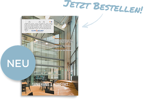 Mit unserem Magazin glasklar möchten wir Sie über die neue Produkte, Entwicklungen und aktuelle Projekte der CLIMAplusSECURIT® Partner und SAINT-GOBAIN informieren. Lassen Sie sich inspirieren für neue Ideen mit GLAS. Bestellen Sie sich jetzt kostenlos Ihre Ausgabe in gedruckter oder digitaler Form.