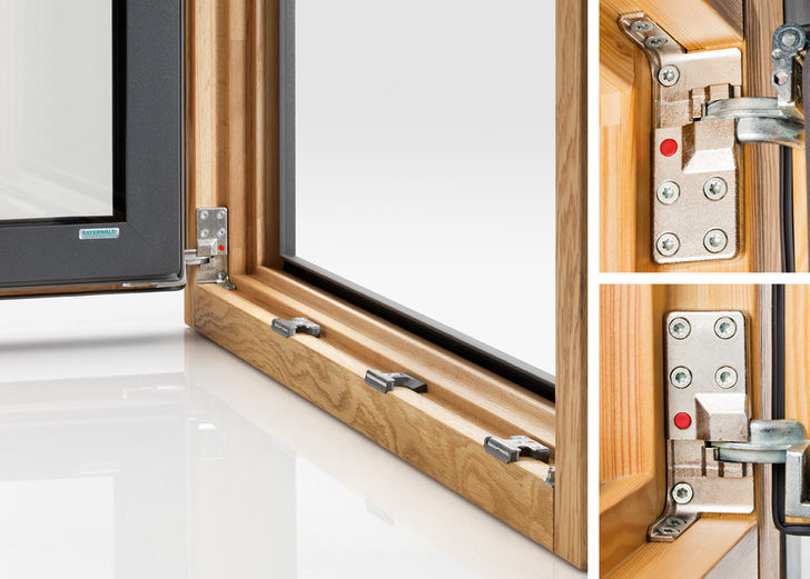 Schon die Standardausführung der Modellserie Safe für Fenster aus Kunststoff, Kunststoff/Aluminium, Holz oder Holz/Aluminium überzeuge mit der Beschlagsausstattung RC1N nach DIN EN 1627, dem verdeckt liegenden, Tresorband, einem Fenstergriff mit Druckknopf und Anbohrschutz, Sicherheitspilzzapfen, die in die Standard- und Sicherheitsschließstücke für hohen Aushebelschutz greifen, sowie Spezialbolzen und Flügelheber, die auch im gekippten Zustand für Sicherheit sorgen.