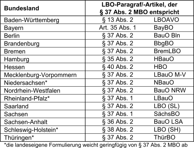 Zunächst einmal ändern sich dadurch die Anforderungen an die infrage kommenden Verglasungen nicht. Denn § 37 Abs. 2 MBO/LBO besteht in dieser Form bereits seit vielen Jahren (seit MBO 2002). Jedoch werden nun alle Anwender der Norm unmissverständlich darauf hingewiesen, dass in jedem Bundesland hierzu eine gesetzliche Regelung existiert, die zu beachten ist (siehe nachfolgende Tabelle).