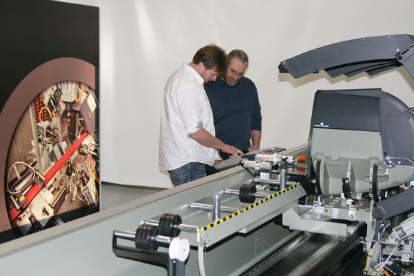 Verkaufsleiter Böhl: "Wir verfügen über ein sehr eng abgestuftes Anlagenprogramm im Aluminium- und Stahlbereich. Das ist unser Vorteil gegenüber den Wettbewerbern." Auch die Maschinenanlagen für die PVC-Fertigung würden ständig weiterentwickelt und erweitert - den Maschinenbauern sei es sehr wichtig als Vollsortimenter auf dem Markt auftreten zu können. Ihr Ziel sei es, die Alufensterfertigung genau so schnell wie die Fertigung von Kunststofffenstern zu machen.