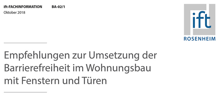 Die 36-seitige ift-Fachinformation BA-02/1 „Empfehlungen zur Umsetzung der Barrierefreiheit im Wohnungsbau mit Fenstern und Türen“ lässt sich im ift-Shop zum Preis von 22,50 Euro direkt herunterladen oder als Printausgabe versandkostenfrei bestellen.