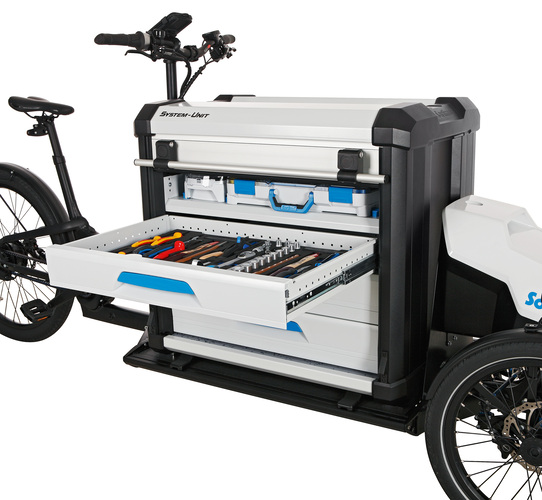 Das Lastenfahrrad ProCargo CT1 ist in zwei verschiedenen Ladeflächenlängen mit integrierter ProSafe Ladungssicherung im Schienensystem links und rechts der Ladefläche verfügbar. Über das Schienensystem lassen sich zudem einfach und variabel verschiedene Transportaufbauten befestigen. Diese variieren von einer einfachen Gitterbox mit flexibler Persenning bis hin zur geschlossenen und wetterfesten Sortimo HD System-Unit, einer Transporteinheit, die mit Schubladen, Boxxen und Koffern bestückt werden kann. Somit sind Waren und Werkzeuge jederzeit sicher verstaut und können sowohl von Lieferdiensten als auch Servicetechnikern auf dem Lastenfahrrad problemlos und sicher transportiert werden.