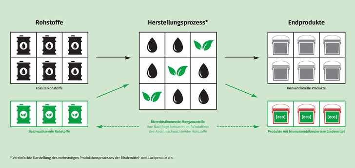 Induline LW-722 [eco] basiert auf einem biomassebilanzierten Bindemittel , für dessen Produktion fossile Rohstoffe wie Erdöl vollständig durch nachwachsende Rohstoffe ersetzt und Treibhausgasemissionen reduziert wurden. Es ist Teil des neuen [eco]-Sortiments.