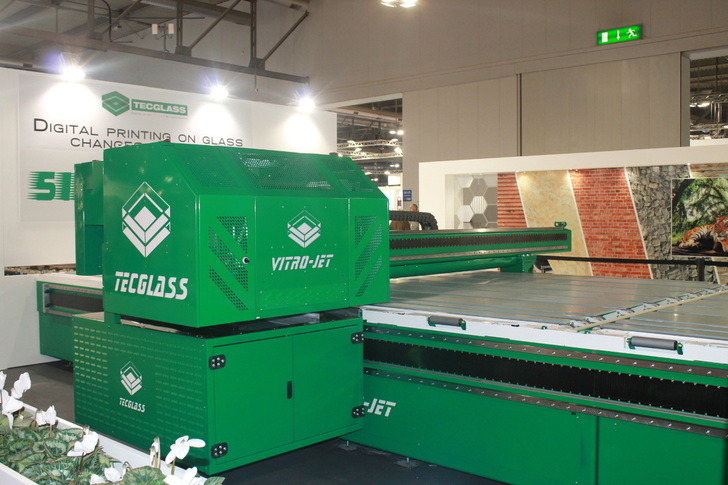 Das Bedrucken großformatiger Glasplatten erfordert heute einen noch geringeren Zeitaufwand. Bei dem Modell Vitro Jet F Type SIDE KINETIX von Tecglass bewegt sich der Druckkopf quer zum Werkstückschlitten. Damit ändert sich alles: Auch bei Platten, deren Dimensionen die des Schlittens überschreiten, kann immer in Richtung der Längsseite der Platte gedruckt werden, technisch gesehen also die einfachste, schnellste Lösung. Eine absolut einzigartige Technik für eine noch vielseitiger verwendbare Maschine, die den Druckvorgang erheblich wirtschaftlicher macht.