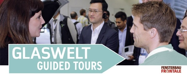 Die Rundgänge werden exklusiv von GLASWELT mit Unterstützung der FENSTERBAU FRONTALE durchgeführt. Die themenbezogenen Rundgänge finden an drei Messetagen, von Mittwoch bis Freitag statt. An den ersten drei Messetagen kommen wir mit unseren geführten Touren einmal täglich an Ihren Stand vorbei. Nach der Messe berichten wir ausführlich in der GLASWELT über die Touren und gezeigten Produkte.