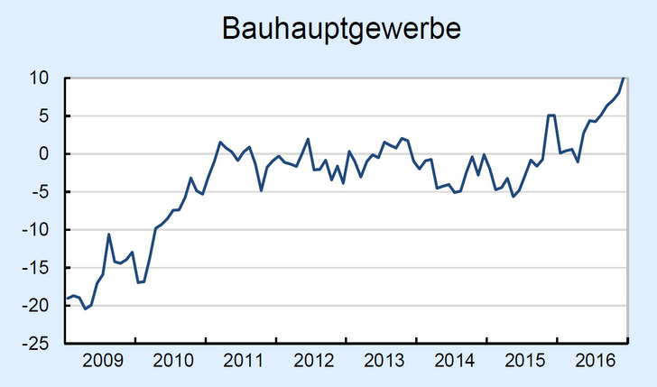 Das Barometer stieg in allen vier Branchen. Im Dienstleistungssektor und im Bauhauptgewerbe wurde sogar ein neuer Rekord erreicht. Hier planen immer mehr Firmen, zusätzliche Mitarbeiter einzustellen. Gleiches gilt auch die Industrie und den Handel, jedoch ist die Dynamik dort etwas verhaltener.