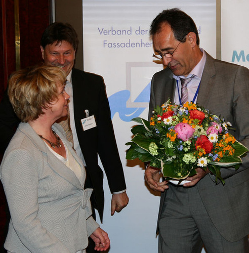 hatte die Aufgabe, den Zuhörern seine Sicht bezüglich der Anforderungen auf die Kunststofffenster der Zukunft zu schildern. Dies absolvierte er, indem er zunächst den Siegeszug dieses Produktes aufzeigte. Gestartet war man 1970 mit einem Marktanteil von 8 % - jetzt dominiert das Material bei den Marktanteilen mit 56 Prozent. Dabei hätte man aber auch Fehler gemacht: Die größten seien dabei gemacht worden, dass Elemente allzu häufig zu groß dimensioniert bzw. statisch unterdimensioniert wurden. Aber auch bei der Einfärbung seien anfangs noch viele Probleme entstanden. Die Zukunft des PVC-Profiles sieht er u. a. in Verbindung mit gedämmten Profilen (ausgeschäumt, Verwendung von Einschieblingen, Einbringung von Granulaten) und in der Scheibenverklebung, denn man müsse "weg vom Stahl" - die Stahleinlagen würden aufgrund ihrer schlechten themischen Eigenschaften in Zukunft substituiert werden.
