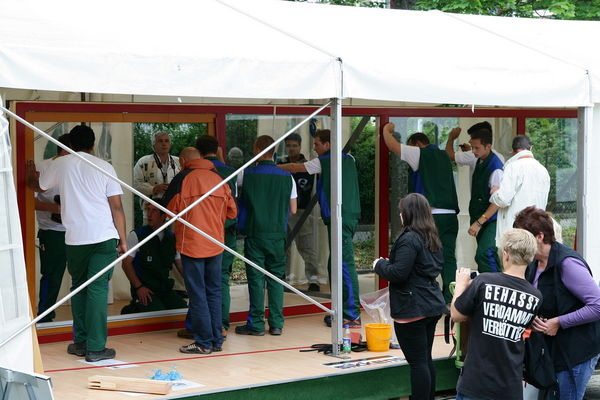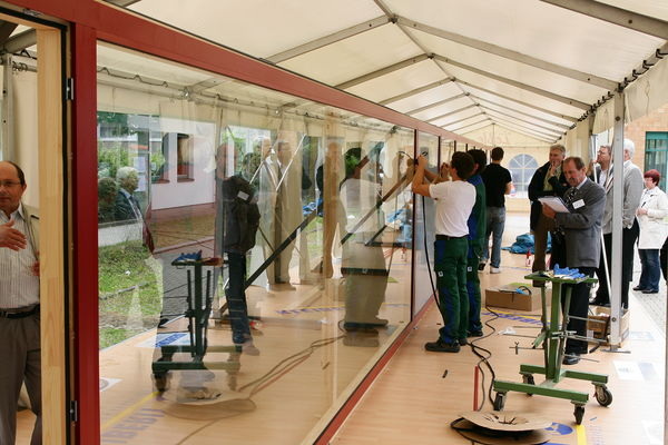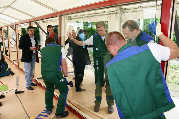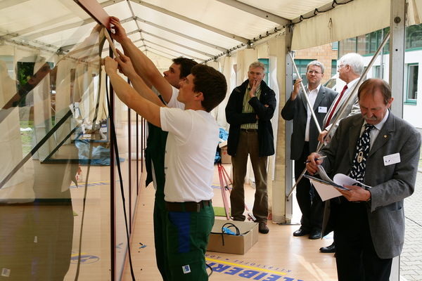 Am 19.06.2010 startete das Team um Akademieleiter Prof. Klaus Layer schon morgens früh um 7 Uhr den Weltrekordversuch, denn man hatte sich nicht nur zum Ziel gesetzt, das größte Holz-Metall-Fenster der Welt zu bauen - man wollte dies auch in einer bestimmten Zeit schaffen: Bis 15 Uhr sollte das 46m lange und 92m² große Riesenfenster stehen. Der alte Rekord wäre dann um 12m² überboten.