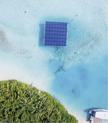 _ Die Swimsol GmbH aus Österreich entwickelte gemeinsam mit der TU Wien schwimmende Solarplattformen, die tropische Inseln vom Meer aus mit Energie versorgen. Der Betrieb einer Solarplattform im Salzwasser und im Wellengang stellt hohe Anforderungen an die Konstruktion und die Materialien.