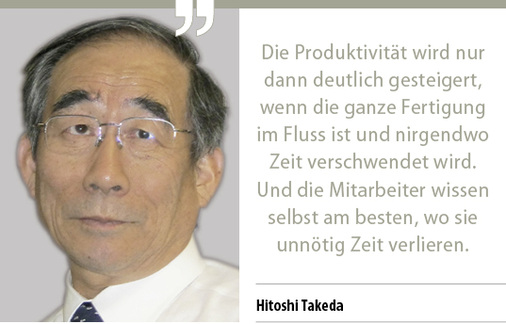 Takeda – Nein. Um die Stückkosten zu reduzieren ist es mindestens ebenso notwendig und förderlich, das Mitdenken und die Eigenverantwortung der Mitarbeiter zu fördern. Es nützt wenig, wenn nur eine einzelne Maschine schnell arbeitet. Die Produktivität wird nur dann deutlich gesteigert, wenn die ganze Fertigung im Fluss ist und nirgendwo Zeit verschwendet wird. Und die Mitarbeiter wissen selbst am besten, wo sie unnötig Zeit verlieren. Die meisten von ihnen wollen ja produktiv und erfolgreich sein. Man muss nur die Rahmenbedingungen dafür schaffen als Führungskraft. Das ist die vielleicht wichtigste Erkenntnis aus den unzähligen Lean Projekten, die ich mitgestalten durfte.