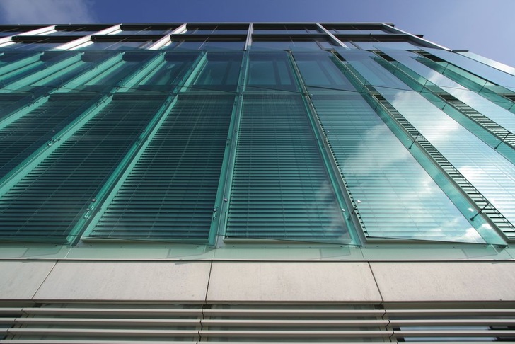 Wichtig sei jedoch, dass zweischalige Fassaden sich anpassten und ihre Aufgabe saisonal oder beim Erreichen einer definierten Zwischenraumtemperatur wahrnehmen könnten, beispielsweise mit Glasklappen im oberen und unteren Bereich der äußeren Schicht, die im Sommer die Durchlüftung des Luftraumes sicherstellten, erklärt der Maschinenbauingenieur.
