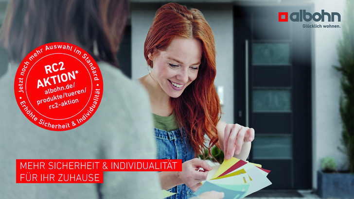 Im Rahmen einer RC2-Haustür-Aktion inkludiert Albohn ohne Aufpreis den höheren Sicherheitsstandard in sein Standardprogramm der ExpressLine, TopLine und SmartLine. Im Ausstattungspaket Design finden sich neue Optionen, beispielsweise dass die Grifflänge (bei Typ „Merkur“ und „Topas“) jetzt in drei Längen erhältlich ist. Auch bei der Zweifarbigkeit der Haustür bestehen jetzt mehrere Möglichkeiten