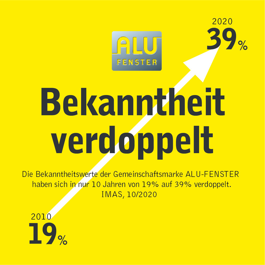 Die Bekanntheit der österreichischen Gemeinschaftsmarke ‚Alu-Fenster‘ hat sich in den letzten zehn Jahren mehr als verdoppelt. Nahezu 40 Prozent der Österreicher und Östereicherinnen kennen das Logo des Aluminium-Fenster-Instituts.