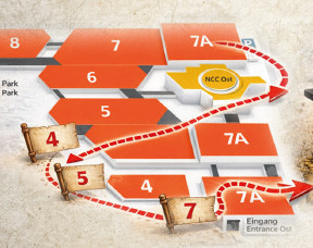 Die Schatzsuche führt Teilnehmer durch die Messehallen zu den Ständen von