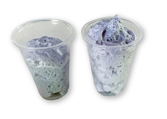 Was hier annähernd wie Softeis aussieht, sind zwei mit PU-Schaum gefüllte Becher. In beide Becher wurde exakt die gleiche Menge PU-Schaum gefüllt. Das Ergebnis? Sehr unterschiedlich: