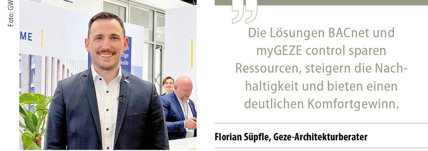 Architekturberater Florian Süpfle von Geze erläutert die erhöhte Gebäudesicherheit durch den innovativen offenen Kommunikationsstandard BACnet und die zentrale Steuerung myGEZE control.