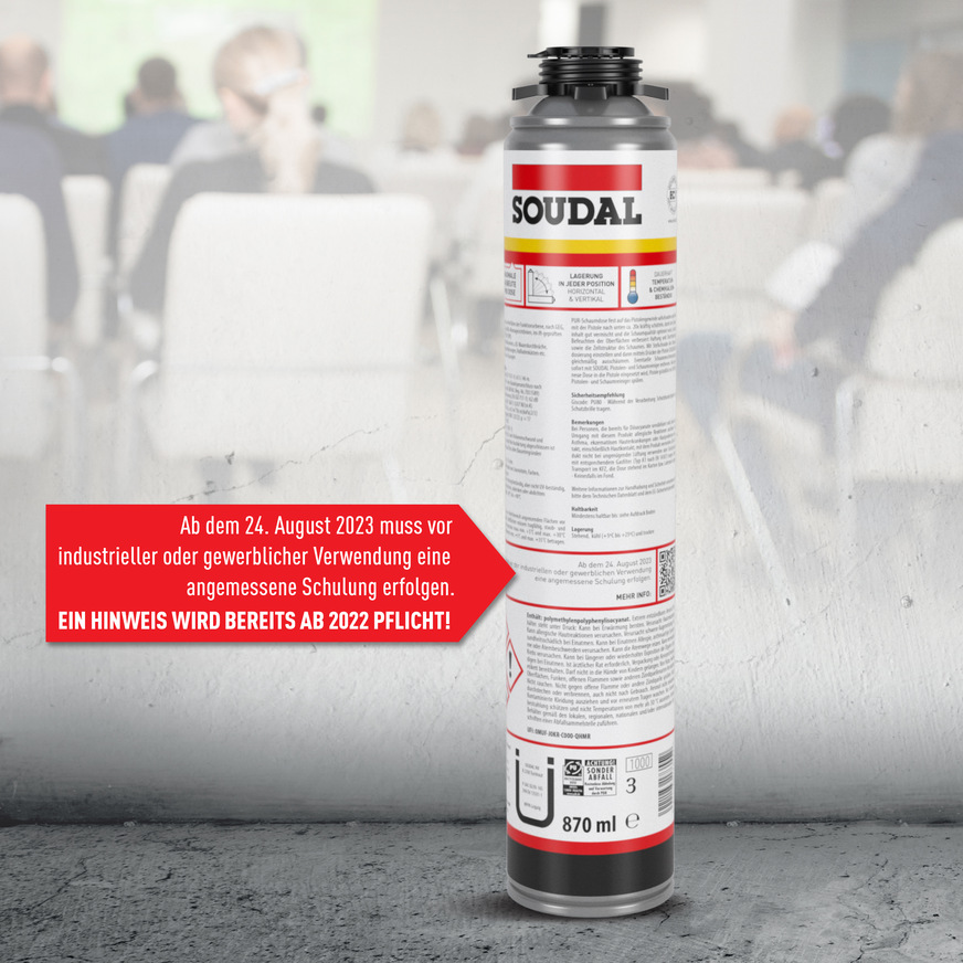 Ein dokumentierter Nachweis der Teilnahme an einer Schulung ist für alle gewerblichen und industriellen Verwender der betreffenden PU-Produkte zwingend erforderlich.