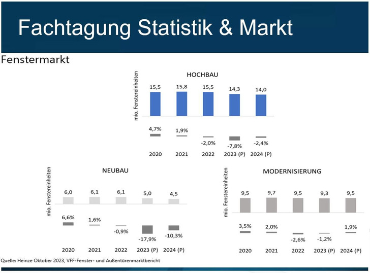 Der Absatz in Fenstereinheiten (FE = 1,3 x 1,3 m) geht somit von 15,5 Mio. FE 2022 sodann auf 13,98 Mio. FE im Jahr 2024 zurück.