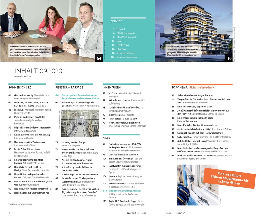 Darüber berichten wir in unseren Ressorts Sonnenschutz, Fenster+Fassade und Glas in der nächsten Ausgabe: