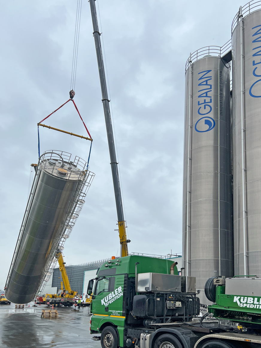 Das neue Gealan-Silo ist das größte der Behältnisse in Tanna: Mit einer Höhe von 23,75 m ist es zwar exakt so hoch wie die nebenstehenden Silos, verfügt aber mit 4,20 m über einen größeren Durchmesser als die anderen Behälter (3,50 m Durchmesser). In den 277 m³ an neuem Lagervolumen werden künftig rund 175 Tonnen rezykliertes Kunststoff-Granulat aufbewahrt. Durch das neue Silo können nun viele umständliche Transporte des benötigten Recyclingmaterials in so genannten „Big-Bags“ vermieden werden.
