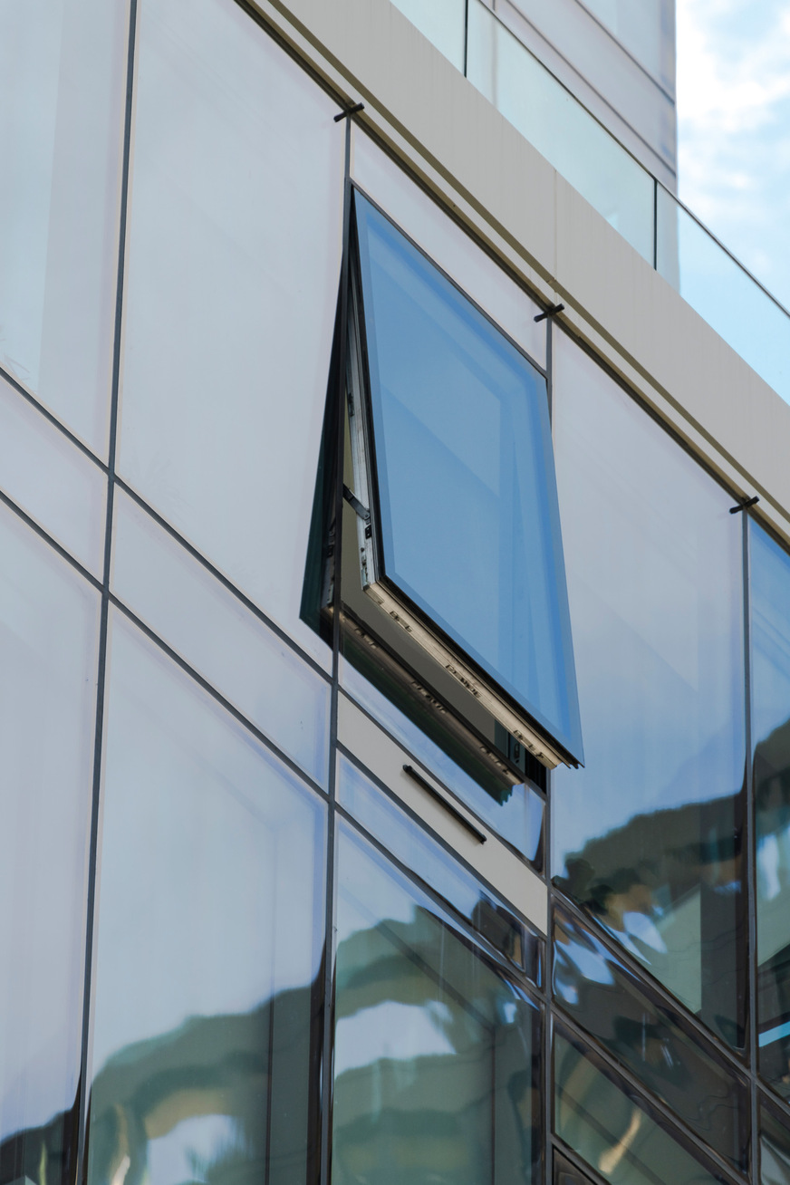 Solch schwere Fensterelemente sind in der Regel raumhoch. Ein vollständiges Öffnen würde eine zusätzliche Absturzsicherung erfordern, die nicht mit den Designansprüchen an die Fassade zusammen passt. Deshalb hat die Unternehemensgruppe einen passenden Öffnungsbegrenzer entwickelt und patentieren lassen. Der Öffnungsbegrenzer ist eine Vorrichtung, mit der Dreh-, Kipp-, Schwing- und Senkklappfenster in der Öffnungsposition begrenzt werden. Dieses Produkt kann für nach innen und nach außen öffnende Fenster eingesetzt werden.