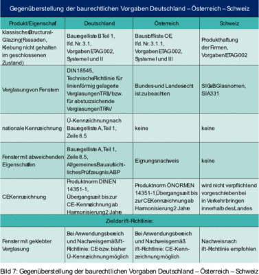 Die baurechtlichen Vorgaben sind je nach Land sehr unterschiedlich. In Bild 7 sind die Vorgaben für Deutschland, Österreich und die Schweiz gegenübergestellt.