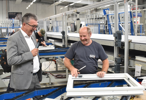 Im Anschluss an das offizielle Pressemeeting ging es zur Besichtigung der Fensterproduktion der Helmut Meeth GmbH & Co. KG in Wittlich. Mehr darüber – auch, was der Unternehmer künftig unter dem Namen cloudwindow.de zur Marktreife bringen will lesen Sie in der Oktoberausgabe der GLASWELT.