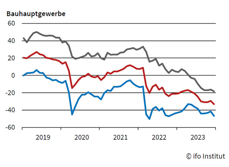 Im Bauhauptgewerbe ist der Geschäftsklimaindikator auf den niedrigsten Wert seit September 2005 gefallen. Die Firmen beurteilten ihre aktuelle Lage schlechter. Zudem geht etwa jedes zweite Unternehmen von einer weiteren Eintrübung der Geschäfte in den kommenden Monaten aus.