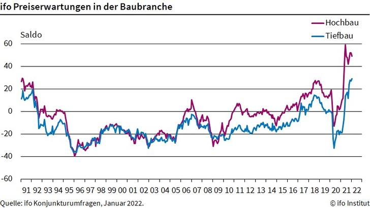 „Das Material bleibt allerdings weiterhin ein Kostentreiber am Bau. Das sehen wir auch im Baustoffgroßhandel: Hier wurden im Januar flächendeckend steigende Verkaufspreise gemeldet. Insbesondere im Hochbau mussten die Unternehmen infolge der steigenden Materialkosten ihrerseits die Preise anheben und für die kommenden Monate waren vielerorts weitere Anpassungen vorgesehen“, sagt Leiss weiter.