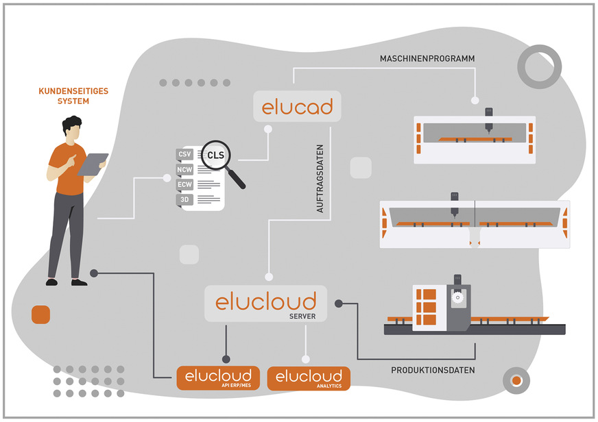 GW – Blicken wir auf den technischen Hintergrund: Wie muss man sich den Ablauf vorstellen, wenn die elumatec Maschine mit eluCad und eluCloud ausgerüstet ist?