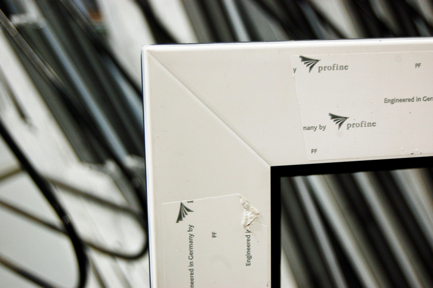 Kommt die Profiloberfläche aus der neuen Schweißmaschine, steht das Anbringen des von Gutmann gelieferten Aluminiumrahmens an. „Selbstverständlich“, liefert Stephan Gerwens, Geschäftsführer der Terhalle Tischlerei GmbH, den nötigen strategischen Background, „ist diese Rahmenmaterialkombination äußerst attraktiv, um im Markt als Terhalle, gerade im für uns wichtigen Projektgeschäft, noch flexibler agieren zu können. Die Zahl der Mischobjekte wächst beständig, in denen dann im Erdgeschoss eine hochwertige Boutique mit entsprechenden Anforderungen an Aluminiumelemente platziert ist, während auf den höheren Stockwerken hochwertige Kunststofffenster – etwa im Zuge der dort folgenden Wohnbebauung – geplant sind.“