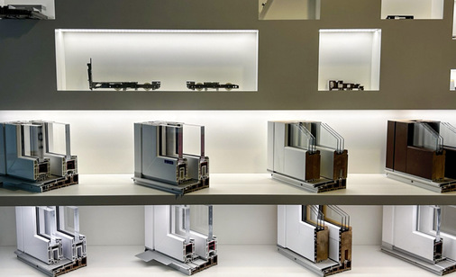 Ebenso ist in Helpsen die hochwärmedämmende ThermoTop comfort Bodenschwelle zu sehen, deren Variantenvielfalt auf einer Schaufläche mit Schwellenmustern und mit vielen Profilen im Querschnitt gezeigt wird.