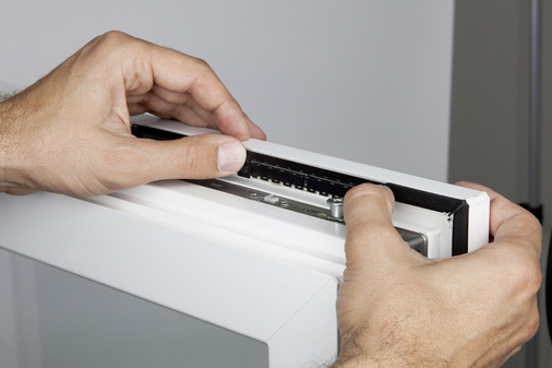 In der freien Dichtungsaufnahmenut wird der Fensterfalzlüfter mit festem Daumendruck einfach eingeclipst. Dabei zeigen die Lüftunsgklappen immer zu Glasscheibe.
