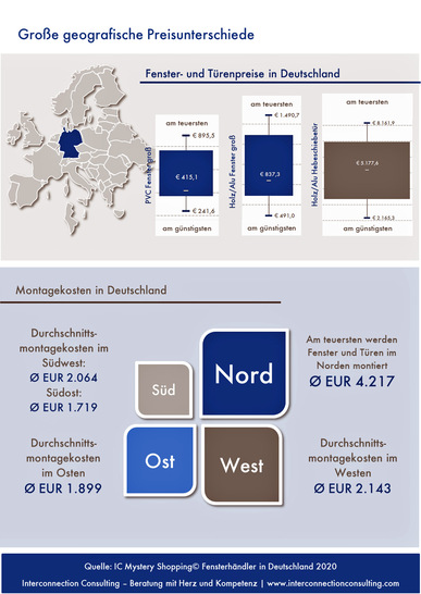Insgesamt wurden 18 Fensterhersteller unter die Lupe genommen. Mit 470 Euro werden im Norden die teuersten PVC-Fenster verkauft. Im Westen lag der Preis durchschnittlich um 70 Euro niedriger. Auch der Osten und der Südwesten Deutschlands lag noch über dem Durchschnittspreis von 437,3 Euro.