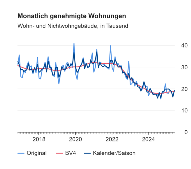 Die Ergebnisse umfassen sowohl Baugenehmigungen für Wohnungen in neuen Wohn- und Nichtwohngebäuden als auch für neue Wohnungen in bestehenden Gebäuden. Allein im Juni 2025 wurden in neu zu errichtenden Wohngebäuden 15.200 Wohnungen genehmigt – 9,5 % oder 1.300 Wohnungen mehr als im Vorjahresmonat.