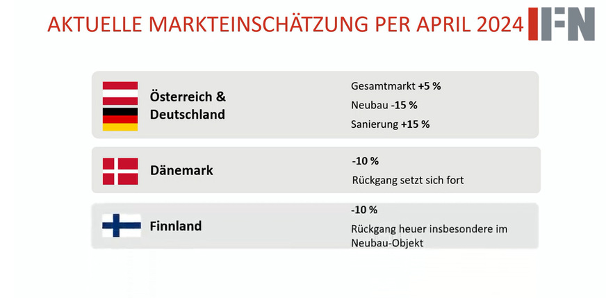 Für den deutschsprachigen Fenstermarkt wird nach einem zweistelligen Rückgang 2023 für das laufende Geschäftsjahr vom Branchenradar ein weiteres Minus von 3,3 % prognostiziert. Erst für 2025 wird eine Seitwärtsbewegung vorhergesagt. Diese Negativentwicklung liegt vor allem am rückläufigen Neubau. Im Sanierungssektor wird dagegen mit einer steigenden Nachfrage gerechnet.