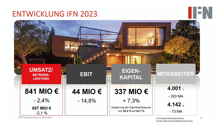 Einen leichten Rückgang gab es bei den Beschäftigten: Im Jahresdurchschnitt waren 4.142 Mitarbeiter und Mitarbeiterinnen bei IFN beschäftigt, was einem Rückgang von 73 Personen oder 1,7 % entspricht.