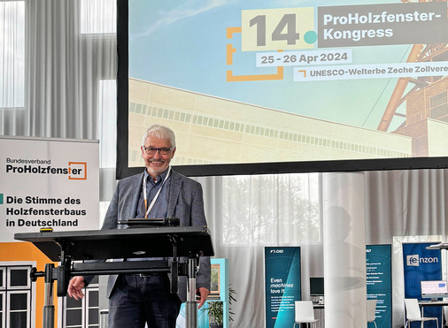 Dr. Johann Quatmann, Hauptgeschäftsführer des Tischlerverbandes NRW, überbrachte das Grußwort der Tischler und Schreiner aus dem bevölkerungsreichsten Bundesland mit dem Hinweis, dass der Schulterschluss der holzverarbeitenden Betriebe wichtig sei, denn „das Geschäft ist hart und man braucht derzeit viel Frustrationstoleranz“. Die Holzfenster produzierenden Betriebe seien die Spezialisten, während der Tischler und Schreiner als Generalist auftrete. Dennoch könnten auch reine Fensterbaubetriebe einen Blick auf die Aus- und Weiterbildung werfen. Die Schreinerausbildung sei auch beim Spezialisten möglich und ebenso wichtig sei eine spezielle Fenstermontage-Weiterbildung, die vom Schreinerverband ermöglicht werde.