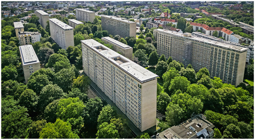 Nachkriegsmoderne unter Denkmalschutz: Als erste Wohnhochhäuser nach 1945 setzten die 12 Grindelhochhäuser im Hamburger Bezirk Eimsbüttel wegweisende Akzente für die Architektur der deutschen Nachkriegszeit..