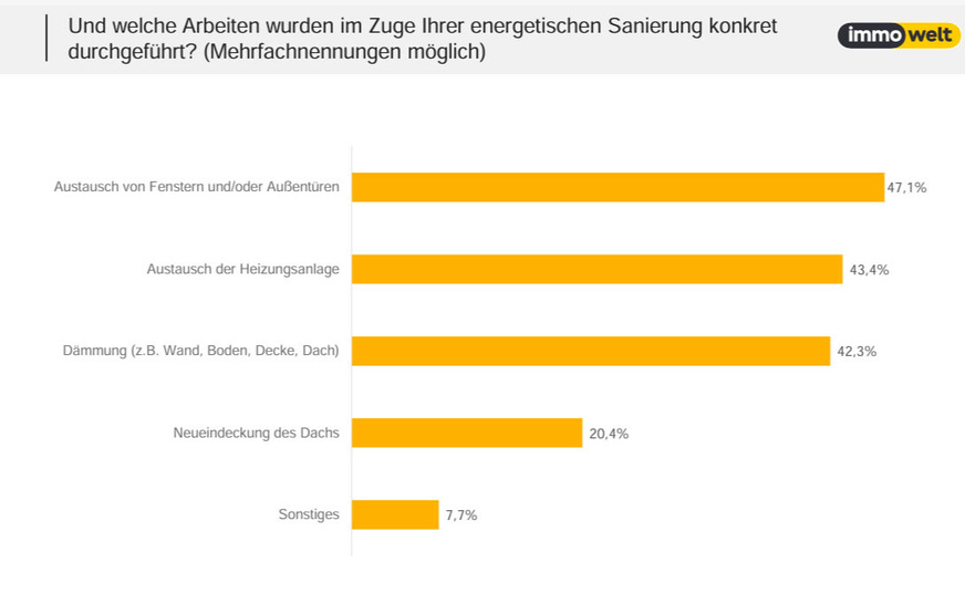 Die Hauptgründe für Sanierungen sind klar: 57 % der modernisierungswilligen Eigentümer hoffen auf niedrigere Betriebskosten, während 46 % den Wohnkomfort steigern wollen. Auch der Wert der Immobilie spielt eine Rolle – für 35,3 % der Befragten ist dies ein wichtiger Faktor.