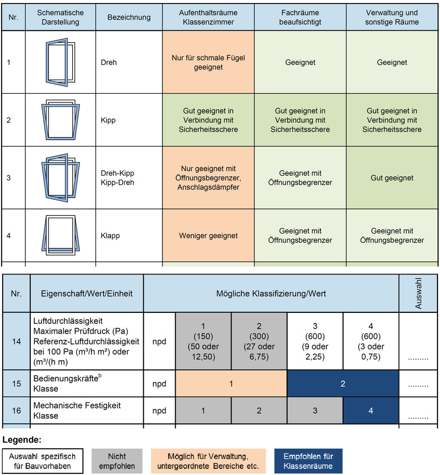aus: ift-Richtlinie FE-16/2 „Einsatzempfehlungen für Fenster in Schulbauten“