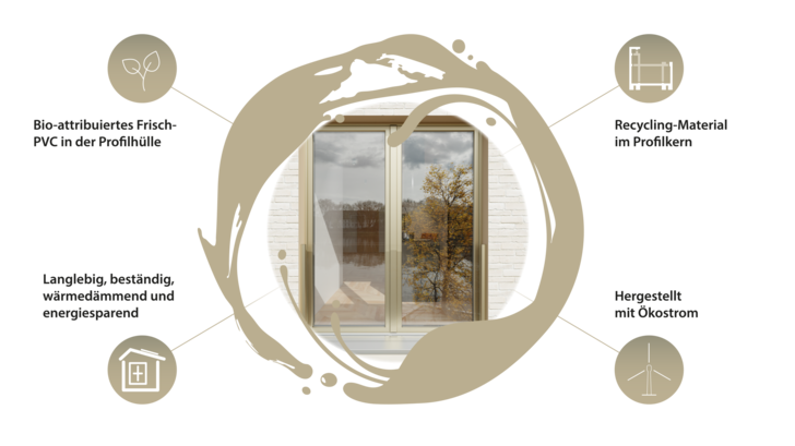 Die Balance-Fensterprofile kombinieren demnach wichtige Eigenschaften: Steigende Anteile von Recylingmaterial im Profilkern und bio-attribuiertes PVC in der Profilhülle ermöglichen CO₂-optimierte Kunststoffprofile für Fenster und Türen.