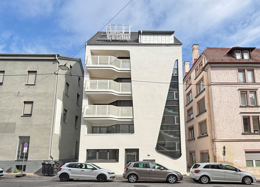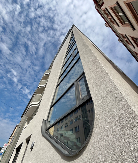 In der Stuttgarter Augustenstraße zieht eine architektonische Besonderheit alle Blicke auf sich: eine fast 12 Meter hohe und tropfenförmige Fassade an einem fünfstöckigen Wohnhaus. Die außergewöhnliche Konstruktion, die unten abgerundet und nach oben spitz zuläuft, stellte alle Beteiligten vor immense technische Herausforderungen. Dank der engen Zusammenarbeit zwischen Schmitt Glas und Metallbau sowie dem Spezialisten Foppe+Foppe konnte dieses visionäre Projekt dennoch realisiert werden.
