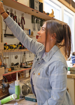 Mara Pischl – Schon als Kind wusste ich, dass ein „0815-Job“ nichts für mich ist. Mein Vater und mein Opa waren beide Schreiner und ich habe ihnen schon früh über die Schulter geschaut. Das Handwerk wurde mir sozusagen in die Wiege gelegt – ich konnte wahrscheinlich mit fünf Jahren besser mit einem Hammer umgehen als mit einem Spielzeugauto. Nach dem Abitur wollte ich ursprünglich in die soziale Richtung abbiegen und Medizin studieren. Der Gedanke, als Ärztin Menschen zu helfen, hat mich begeistert. Aber mein Abiturschnitt lag nicht ganz im Bereich der medizinischen Spitzenwerte und ein Wartesemester kam für mich nicht in Frage – ich wollte sofort loslegen und Geld verdienen. Also habe ich mich auf die Reise in das Schreinerhandwerk begeben. Das war die beste Entscheidung, die ich treffen konnte: Jetzt kann ich kreativ arbeiten, meine handwerklichen Fähigkeiten einsetzen und Kunden mit meinen Reparaturen glücklich machen.