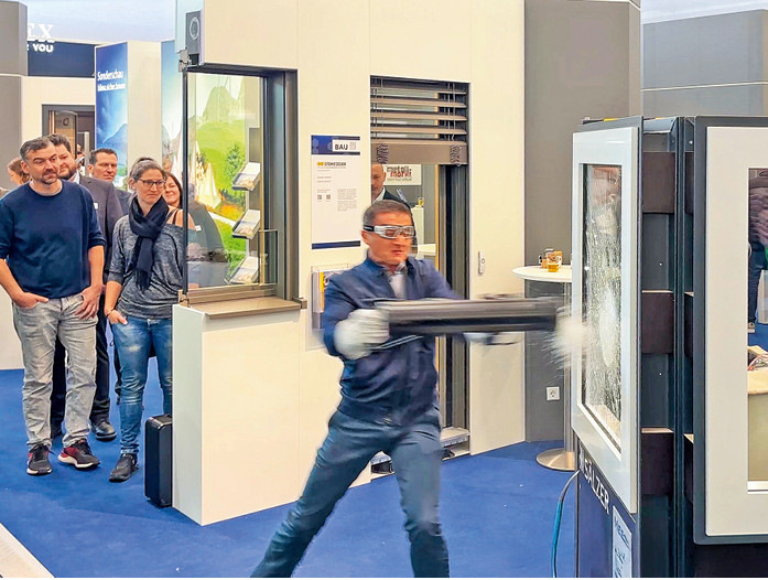 Am ift-Gemeinschaftsstand auf der BAU 2025 sorgte eine beeindruckende Vandalismus-Vorführung für Aufsehen. Gezeigt wurde, wie widerstandsfähig Fenster in extremen Szenarien sein können – beispielsweise wenn gewalttätige Gruppen bei Großveranstaltungen wie Demonstrationen Potenziale freilegen, die weit über typische Einbruchnormen hinausgehen. Dabei sollten Szenarien simuliert werden, in denen gewalttätige Gruppen z. B. bei sportlichen Großveranstaltungen oder Demonstrationen „aktiv“ sind und die aktuell nicht von den Einbruchnormen abgedeckt werden.