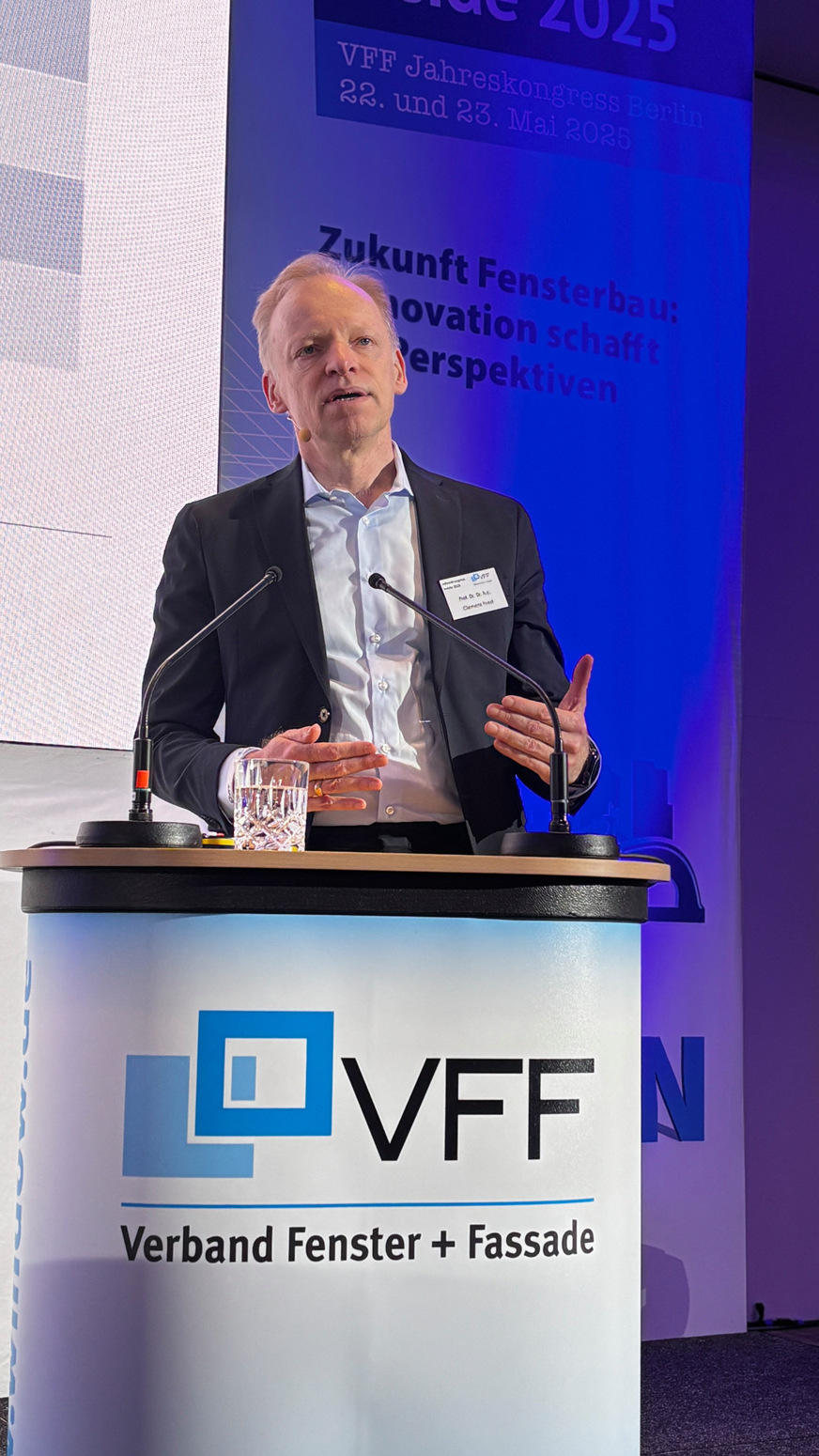 Mit einem Teilnehmerrekord von 375 Personen setzte der diesjährige Jahreskongress des Verbands Fenster + Fassade (VFF) ein deutliches Zeichen: Die Branche zeigt Präsenz, sucht Orientierung – und ist bereit, Verantwortung zu übernehmen. In Berlin diskutierten Unternehmerinnen und Unternehmer, Systemgeber, Vertreter der Politik und weitere Branchenteilnehmer intensiv über aktuelle Herausforderungen, neue politische Rahmenbedingungen und konkrete Lösungen für die Transformation des Gebäudesektors. Die Stimmung war positiv, der Austausch intensiv, die Erwartungen klar: Es braucht verlässliche Politik, einfachere Förderstrukturen und mehr Digitalisierung.