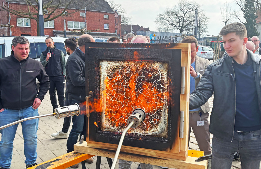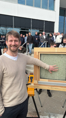 Ein weiterer Höhepunkt war die Präsentation zum Thema Brandschutz-Fenster. Albert Schweitzer von Arnold Holz erklärte die Funktionsweise moderner Brandschutzfenster: Der Glasaufbau – etwa ESG mit Gelfüllung oder kombiniert mit VSG – sorgt im Brandfall für Schutz. Durch die Hitze wird das Gel opak und bildet eine Barriere gegen Flammen. Fensterbauer können solche Elemente entweder selbst bauen oder bei Spezialisten wie MB Fensterbau oder Grünbeck beziehen.