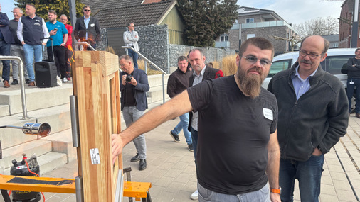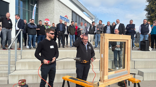 Auch Warema prägte die Agenda maßgeblich: Andreas Lindau erwies sich als kongenialer Sparringspartner und Moderator an der Seite von Remmers-Vertriebsmann Martin Stöger. Nach einem fachlichen Vortrag über das Fenster als Rettungsweg und die Produktlösung dazu von Warema traten die beiden in einer amüsanten Challenge gegeneinander an. Der Sieger stand schnell fest: Während Stöger mühsam an der Handkurbel drehte, setzte Lindau auf das SecuKit von Warema – und gewann locker.